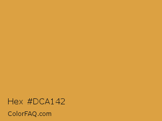 Hex #dca142 Color is a normal orange color and the nearest color is Gold Metallic #d4af37. Hex code #dca142 and RGB value is rgb(220,161,66). In RGB color space, this color is composed of 86% red, 63% green, 26% blue, In CMYK color space, this color is composed of 0% cyan, 27% magenta, 70% yellow , 14% black , In HSL color space, this color has a hue angle of 37° , 69% saturation and 56% lightness.