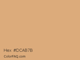Hex #dcab7b Color is a light orange color and the nearest color is Tumbleweed #dea681. Hex code #dcab7b and RGB value is rgb(220,171,123). In RGB color space, this color is composed of 86% red, 67% green, 48% blue, In CMYK color space, this color is composed of 0% cyan, 22% magenta, 44% yellow , 14% black , In HSL color space, this color has a hue angle of 30° , 58% saturation and 67% lightness.