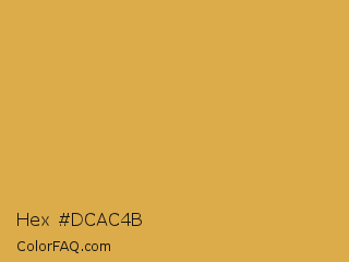 Hex #dcac4b Color is a normal orange color and the nearest color is Anzac #e0b646. Hex code #dcac4b and RGB value is rgb(220,172,75). In RGB color space, this color is composed of 86% red, 67% green, 29% blue, In CMYK color space, this color is composed of 0% cyan, 22% magenta, 66% yellow , 14% black , In HSL color space, this color has a hue angle of 40° , 67% saturation and 58% lightness.