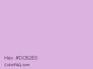 Hex #dcb2e0 Color is a light magenta color and the nearest color is Pink Lavender #d8b2d1. Hex code #dcb2e0 and RGB value is rgb(220,178,224). In RGB color space, this color is composed of 86% red, 70% green, 88% blue, In CMYK color space, this color is composed of 2% cyan, 21% magenta, 0% yellow , 12% black , In HSL color space, this color has a hue angle of 295° , 43% saturation and 79% lightness.