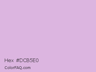 Hex #dcb5e0 Color is a light magenta color and the nearest color is Thistle #d8bfd8. Hex code #dcb5e0 and RGB value is rgb(220,181,224). In RGB color space, this color is composed of 86% red, 71% green, 88% blue, In CMYK color space, this color is composed of 2% cyan, 19% magenta, 0% yellow , 12% black , In HSL color space, this color has a hue angle of 294° , 41% saturation and 79% lightness.