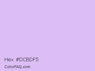 Hex #dcbdf5 Color is a very light purple color and the nearest color is Perfume #d0bef8. Hex code #dcbdf5 and RGB value is rgb(220,189,245). In RGB color space, this color is composed of 86% red, 74% green, 96% blue, In CMYK color space, this color is composed of 10% cyan, 23% magenta, 0% yellow , 4% black , In HSL color space, this color has a hue angle of 273° , 74% saturation and 85% lightness.