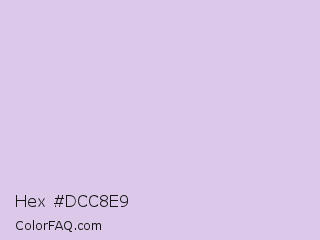 Hex #dcc8e9 Color is a very light purple color and the nearest color is Languid Lavender #d6cadd. Hex code #dcc8e9 and RGB value is rgb(220,200,233). In RGB color space, this color is composed of 86% red, 78% green, 91% blue, In CMYK color space, this color is composed of 6% cyan, 14% magenta, 0% yellow , 9% black , In HSL color space, this color has a hue angle of 276° , 43% saturation and 85% lightness.