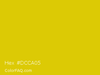Hex #dcca05 Color is a normal yellow color and the nearest color is Citrine #e4d00a. Hex code #dcca05 and RGB value is rgb(220,202,5). In RGB color space, this color is composed of 86% red, 79% green, 2% blue, In CMYK color space, this color is composed of 0% cyan, 8% magenta, 98% yellow , 14% black , In HSL color space, this color has a hue angle of 55° , 96% saturation and 44% lightness.