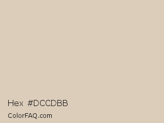 Hex #dccdbb Color is a light orange color and the nearest color is Sisal #d3cbba. Hex code #dccdbb and RGB value is rgb(220,205,187). In RGB color space, this color is composed of 86% red, 80% green, 73% blue, In CMYK color space, this color is composed of 0% cyan, 7% magenta, 15% yellow , 14% black , In HSL color space, this color has a hue angle of 33° , 32% saturation and 80% lightness.