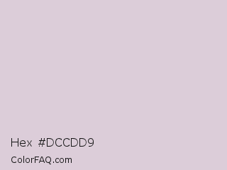 Hex #dccdd9 Color is a very light magenta color and the nearest color is Lola #dfcfdb. Hex code #dccdd9 and RGB value is rgb(220,205,217). In RGB color space, this color is composed of 86% red, 80% green, 85% blue, In CMYK color space, this color is composed of 0% cyan, 7% magenta, 1% yellow , 14% black , In HSL color space, this color has a hue angle of 312° , 18% saturation and 83% lightness.