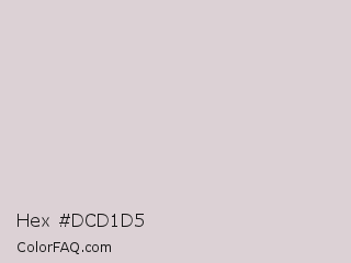 Hex #dcd1d5 Color is a very light rose color and the nearest color is Swiss Coffee #ddd6d5. Hex code #dcd1d5 and RGB value is rgb(220,209,213). In RGB color space, this color is composed of 86% red, 82% green, 84% blue, In CMYK color space, this color is composed of 0% cyan, 5% magenta, 3% yellow , 14% black , In HSL color space, this color has a hue angle of 338° , 14% saturation and 84% lightness.