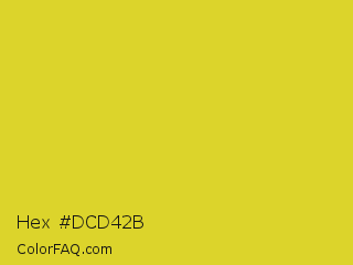 Hex #dcd42b Color is a normal yellow color and the nearest color is Sunflower #e4d422. Hex code #dcd42b and RGB value is rgb(220,212,43). In RGB color space, this color is composed of 86% red, 83% green, 17% blue, In CMYK color space, this color is composed of 0% cyan, 4% magenta, 80% yellow , 14% black , In HSL color space, this color has a hue angle of 57° , 72% saturation and 52% lightness.