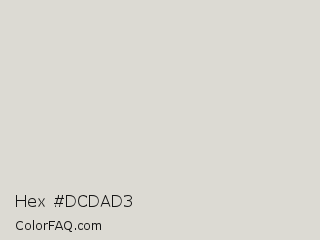 Hex #dcdad3 Color is a very light yellow color and the nearest color is Westar #dcd9d2. Hex code #dcdad3 and RGB value is rgb(220,218,211). In RGB color space, this color is composed of 86% red, 85% green, 83% blue, In CMYK color space, this color is composed of 0% cyan, 1% magenta, 4% yellow , 14% black , In HSL color space, this color has a hue angle of 47° , 11% saturation and 85% lightness.
