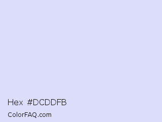 Hex #dcddfb Color is a very light blue color and the nearest color is Hawkes Blue #d4e2fc. Hex code #dcddfb and RGB value is rgb(220,221,251). In RGB color space, this color is composed of 86% red, 87% green, 98% blue, In CMYK color space, this color is composed of 12% cyan, 12% magenta, 0% yellow , 2% black , In HSL color space, this color has a hue angle of 238° , 79% saturation and 92% lightness.