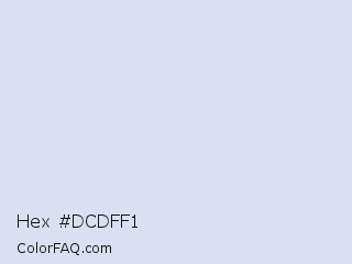 Hex #dcdff1 Color is a very light blue color and the nearest color is Link Water #d9e4f5. Hex code #dcdff1 and RGB value is rgb(220,223,241). In RGB color space, this color is composed of 86% red, 87% green, 95% blue, In CMYK color space, this color is composed of 9% cyan, 7% magenta, 0% yellow , 5% black , In HSL color space, this color has a hue angle of 231° , 43% saturation and 90% lightness.