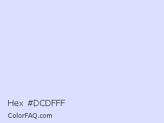 Hex #dcdfff Color is a very light blue color and the nearest color is Hawkes Blue #d4e2fc. Hex code #dcdfff and RGB value is rgb(220,223,255). In RGB color space, this color is composed of 86% red, 87% green, 100% blue, In CMYK color space, this color is composed of 14% cyan, 13% magenta, 0% yellow , 0% black , In HSL color space, this color has a hue angle of 235° , 100% saturation and 93% lightness.