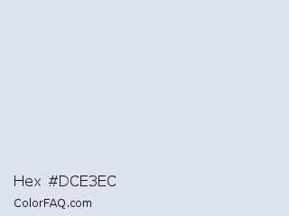 Hex #dce3ec Color is a very light blue color and the nearest color is Link Water #d9e4f5. Hex code #dce3ec and RGB value is rgb(220,227,236). In RGB color space, this color is composed of 86% red, 89% green, 93% blue, In CMYK color space, this color is composed of 7% cyan, 4% magenta, 0% yellow , 7% black , In HSL color space, this color has a hue angle of 214° , 30% saturation and 89% lightness.