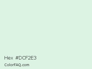 Hex #dcf2e3 Color is a very light green color and the nearest color is Swans Down #dcf0ea. Hex code #dcf2e3 and RGB value is rgb(220,242,227). In RGB color space, this color is composed of 86% red, 95% green, 89% blue, In CMYK color space, this color is composed of 9% cyan, 0% magenta, 6% yellow , 5% black , In HSL color space, this color has a hue angle of 139° , 46% saturation and 91% lightness.