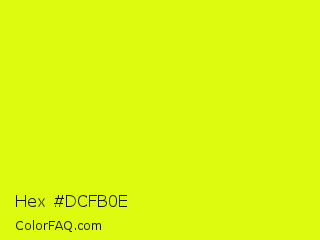 Hex #dcfb0e Color is a normal yellow color and the nearest color is Arctic Lime #d0ff14. Hex code #dcfb0e and RGB value is rgb(220,251,14). In RGB color space, this color is composed of 86% red, 98% green, 5% blue, In CMYK color space, this color is composed of 12% cyan, 0% magenta, 94% yellow , 2% black , In HSL color space, this color has a hue angle of 68° , 97% saturation and 52% lightness.