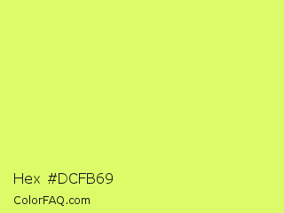 Hex #dcfb69 Color is a light lime color and the nearest color is Canary #f3fb62. Hex code #dcfb69 and RGB value is rgb(220,251,105). In RGB color space, this color is composed of 86% red, 98% green, 41% blue, In CMYK color space, this color is composed of 12% cyan, 0% magenta, 58% yellow , 2% black , In HSL color space, this color has a hue angle of 73° , 95% saturation and 70% lightness.