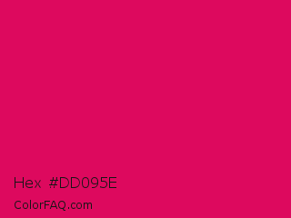Hex #dd095e Color is a normal rose color and the nearest color is Raspberry #e30b5d. Hex code #dd095e and RGB value is rgb(221,9,94). In RGB color space, this color is composed of 87% red, 4% green, 37% blue, In CMYK color space, this color is composed of 0% cyan, 96% magenta, 57% yellow , 13% black , In HSL color space, this color has a hue angle of 336° , 92% saturation and 45% lightness.