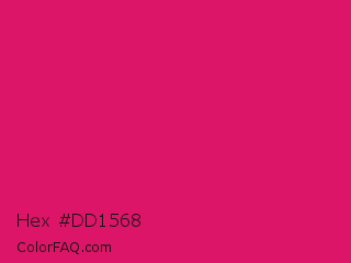 Hex #dd1568 Color is a normal rose color and the nearest color is Dogwood Rose #d71868. Hex code #dd1568 and RGB value is rgb(221,21,104). In RGB color space, this color is composed of 87% red, 8% green, 41% blue, In CMYK color space, this color is composed of 0% cyan, 90% magenta, 53% yellow , 13% black , In HSL color space, this color has a hue angle of 335° , 83% saturation and 47% lightness.