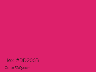 Hex #dd206b Color is a normal rose color and the nearest color is Razzmatazz #e3256b. Hex code #dd206b and RGB value is rgb(221,32,107). In RGB color space, this color is composed of 87% red, 13% green, 42% blue, In CMYK color space, this color is composed of 0% cyan, 86% magenta, 52% yellow , 13% black , In HSL color space, this color has a hue angle of 336° , 75% saturation and 50% lightness.