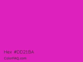 Hex #dd21ba Color is a normal magenta color and the nearest color is Steel Pink #cc33cc. Hex code #dd21ba and RGB value is rgb(221,33,186). In RGB color space, this color is composed of 87% red, 13% green, 73% blue, In CMYK color space, this color is composed of 0% cyan, 85% magenta, 16% yellow , 13% black , In HSL color space, this color has a hue angle of 311° , 74% saturation and 50% lightness.
