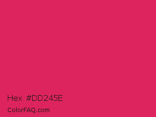 Hex #dd245e Color is a normal rose color and the nearest color is Cerise Red #de3163. Hex code #dd245e and RGB value is rgb(221,36,94). In RGB color space, this color is composed of 87% red, 14% green, 37% blue, In CMYK color space, this color is composed of 0% cyan, 84% magenta, 57% yellow , 13% black , In HSL color space, this color has a hue angle of 341° , 73% saturation and 50% lightness.