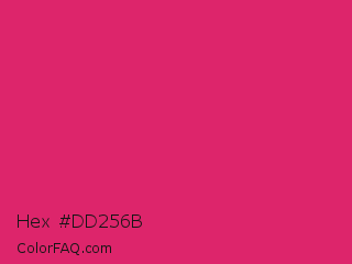 Hex #dd256b Color is a normal rose color and the nearest color is Razzmatazz #e3256b. Hex code #dd256b and RGB value is rgb(221,37,107). In RGB color space, this color is composed of 87% red, 15% green, 42% blue, In CMYK color space, this color is composed of 0% cyan, 83% magenta, 52% yellow , 13% black , In HSL color space, this color has a hue angle of 337° , 73% saturation and 51% lightness.