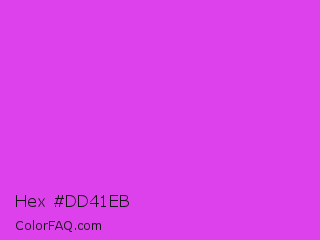 Hex #dd41eb Color is a normal magenta color and the nearest color is Steel Pink #cc33cc. Hex code #dd41eb and RGB value is rgb(221,65,235). In RGB color space, this color is composed of 87% red, 25% green, 92% blue, In CMYK color space, this color is composed of 6% cyan, 72% magenta, 0% yellow , 8% black , In HSL color space, this color has a hue angle of 295° , 81% saturation and 59% lightness.