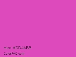 Hex #dd4abb Color is a normal magenta color and the nearest color is Fuchsia Pink #c154c1. Hex code #dd4abb and RGB value is rgb(221,74,187). In RGB color space, this color is composed of 87% red, 29% green, 73% blue, In CMYK color space, this color is composed of 0% cyan, 67% magenta, 15% yellow , 13% black , In HSL color space, this color has a hue angle of 314° , 68% saturation and 58% lightness.