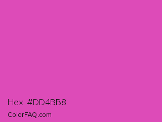 Hex #dd4bb8 Color is a normal magenta color and the nearest color is Frostbite #e936a7. Hex code #dd4bb8 and RGB value is rgb(221,75,184). In RGB color space, this color is composed of 87% red, 29% green, 72% blue, In CMYK color space, this color is composed of 0% cyan, 66% magenta, 17% yellow , 13% black , In HSL color space, this color has a hue angle of 315° , 68% saturation and 58% lightness.