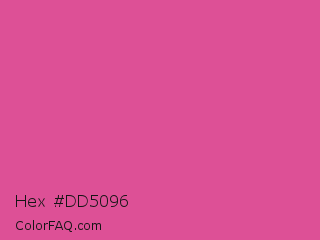 Hex #dd5096 Color is a normal rose color and the nearest color is Raspberry Pink #e25098. Hex code #dd5096 and RGB value is rgb(221,80,150). In RGB color space, this color is composed of 87% red, 31% green, 59% blue, In CMYK color space, this color is composed of 0% cyan, 64% magenta, 32% yellow , 13% black , In HSL color space, this color has a hue angle of 330° , 67% saturation and 59% lightness.