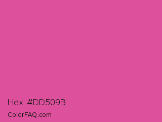 Hex #dd509b Color is a normal rose color and the nearest color is Raspberry Pink #e25098. Hex code #dd509b and RGB value is rgb(221,80,155). In RGB color space, this color is composed of 87% red, 31% green, 61% blue, In CMYK color space, this color is composed of 0% cyan, 64% magenta, 30% yellow , 13% black , In HSL color space, this color has a hue angle of 328° , 67% saturation and 59% lightness.
