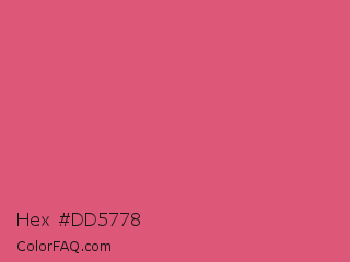 Hex #dd5778 Color is a normal red color and the nearest color is Cranberry #db5079. Hex code #dd5778 and RGB value is rgb(221,87,120). In RGB color space, this color is composed of 87% red, 34% green, 47% blue, In CMYK color space, this color is composed of 0% cyan, 61% magenta, 46% yellow , 13% black , In HSL color space, this color has a hue angle of 345° , 66% saturation and 60% lightness.