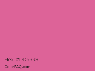 Hex #dd6398 Color is a light rose color and the nearest color is Pale Red Violet #db7093. Hex code #dd6398 and RGB value is rgb(221,99,152). In RGB color space, this color is composed of 87% red, 39% green, 60% blue, In CMYK color space, this color is composed of 0% cyan, 55% magenta, 31% yellow , 13% black , In HSL color space, this color has a hue angle of 334° , 64% saturation and 63% lightness.