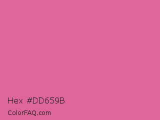 Hex #dd659b Color is a light rose color and the nearest color is Thulian Pink #de6fa1. Hex code #dd659b and RGB value is rgb(221,101,155). In RGB color space, this color is composed of 87% red, 40% green, 61% blue, In CMYK color space, this color is composed of 0% cyan, 54% magenta, 30% yellow , 13% black , In HSL color space, this color has a hue angle of 333° , 64% saturation and 63% lightness.