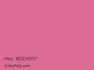 Hex #dd6997 Color is a light rose color and the nearest color is Pale Red Violet #db7093. Hex code #dd6997 and RGB value is rgb(221,105,151). In RGB color space, this color is composed of 87% red, 41% green, 59% blue, In CMYK color space, this color is composed of 0% cyan, 52% magenta, 32% yellow , 13% black , In HSL color space, this color has a hue angle of 336° , 63% saturation and 64% lightness.