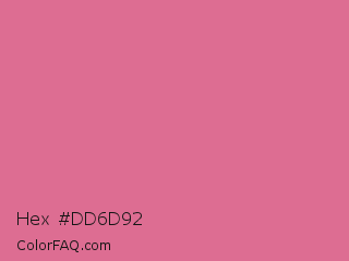 Hex #dd6d92 Color is a light rose color and the nearest color is Pale Red Violet #db7093. Hex code #dd6d92 and RGB value is rgb(221,109,146). In RGB color space, this color is composed of 87% red, 43% green, 57% blue, In CMYK color space, this color is composed of 0% cyan, 51% magenta, 34% yellow , 13% black , In HSL color space, this color has a hue angle of 340° , 62% saturation and 65% lightness.