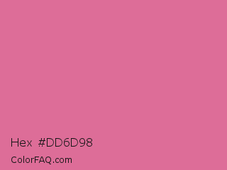 Hex #dd6d98 Color is a light rose color and the nearest color is Pale Red Violet #db7093. Hex code #dd6d98 and RGB value is rgb(221,109,152). In RGB color space, this color is composed of 87% red, 43% green, 60% blue, In CMYK color space, this color is composed of 0% cyan, 51% magenta, 31% yellow , 13% black , In HSL color space, this color has a hue angle of 337° , 62% saturation and 65% lightness.