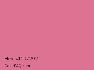 Hex #dd7292 Color is a light rose color and the nearest color is Pale Red Violet #db7093. Hex code #dd7292 and RGB value is rgb(221,114,146). In RGB color space, this color is composed of 87% red, 45% green, 57% blue, In CMYK color space, this color is composed of 0% cyan, 48% magenta, 34% yellow , 13% black , In HSL color space, this color has a hue angle of 342° , 61% saturation and 66% lightness.