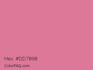 Hex #dd7898 Color is a light rose color and the nearest color is Bright Blush #e47698. Hex code #dd7898 and RGB value is rgb(221,120,152). In RGB color space, this color is composed of 87% red, 47% green, 60% blue, In CMYK color space, this color is composed of 0% cyan, 46% magenta, 31% yellow , 13% black , In HSL color space, this color has a hue angle of 341° , 60% saturation and 67% lightness.