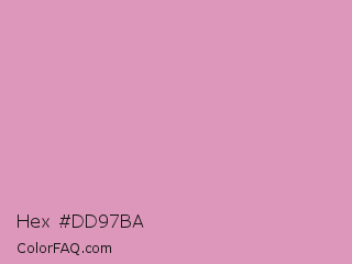 Hex #dd97ba Color is a light rose color and the nearest color is Shocking #e292c0. Hex code #dd97ba and RGB value is rgb(221,151,186). In RGB color space, this color is composed of 87% red, 59% green, 73% blue, In CMYK color space, this color is composed of 0% cyan, 32% magenta, 16% yellow , 13% black , In HSL color space, this color has a hue angle of 330° , 51% saturation and 73% lightness.