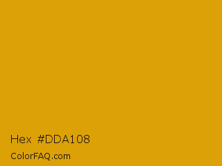 Hex #dda108 Color is a normal orange color and the nearest color is Gamboge #e49b0f. Hex code #dda108 and RGB value is rgb(221,161,8). In RGB color space, this color is composed of 87% red, 63% green, 3% blue, In CMYK color space, this color is composed of 0% cyan, 27% magenta, 96% yellow , 13% black , In HSL color space, this color has a hue angle of 43° , 93% saturation and 45% lightness.