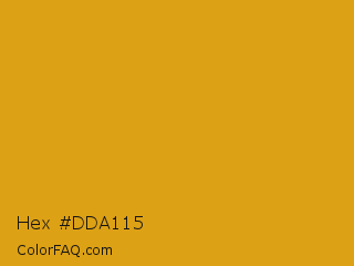 Hex #dda115 Color is a normal orange color and the nearest color is Gamboge #e49b0f. Hex code #dda115 and RGB value is rgb(221,161,21). In RGB color space, this color is composed of 87% red, 63% green, 8% blue, In CMYK color space, this color is composed of 0% cyan, 27% magenta, 90% yellow , 13% black , In HSL color space, this color has a hue angle of 42° , 83% saturation and 47% lightness.
