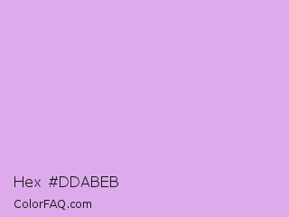 Hex #ddabeb Color is a light purple color and the nearest color is Bright Ube #d19fe8. Hex code #ddabeb and RGB value is rgb(221,171,235). In RGB color space, this color is composed of 87% red, 67% green, 92% blue, In CMYK color space, this color is composed of 6% cyan, 27% magenta, 0% yellow , 8% black , In HSL color space, this color has a hue angle of 287° , 62% saturation and 80% lightness.