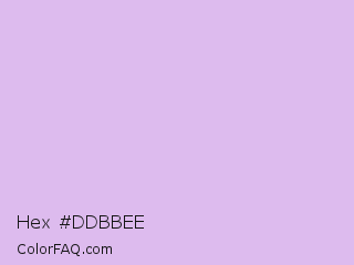 Hex #ddbbee Color is a very light purple color and the nearest color is Prelude #d0c0e5. Hex code #ddbbee and RGB value is rgb(221,187,238). In RGB color space, this color is composed of 87% red, 73% green, 93% blue, In CMYK color space, this color is composed of 7% cyan, 21% magenta, 0% yellow , 7% black , In HSL color space, this color has a hue angle of 280° , 60% saturation and 83% lightness.