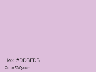 Hex #ddbedb Color is a very light magenta color and the nearest color is Thistle #d8bfd8. Hex code #ddbedb and RGB value is rgb(221,190,219). In RGB color space, this color is composed of 87% red, 75% green, 86% blue, In CMYK color space, this color is composed of 0% cyan, 14% magenta, 1% yellow , 13% black , In HSL color space, this color has a hue angle of 304° , 31% saturation and 81% lightness.