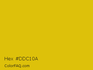 Hex #ddc10a Color is a normal yellow color and the nearest color is Corn #e7bf05. Hex code #ddc10a and RGB value is rgb(221,193,10). In RGB color space, this color is composed of 87% red, 76% green, 4% blue, In CMYK color space, this color is composed of 0% cyan, 13% magenta, 95% yellow , 13% black , In HSL color space, this color has a hue angle of 52° , 91% saturation and 45% lightness.