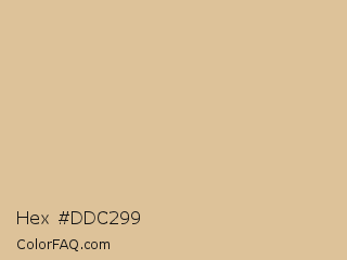 Hex #ddc299 Color is a light orange color and the nearest color is Brandy #dec196. Hex code #ddc299 and RGB value is rgb(221,194,153). In RGB color space, this color is composed of 87% red, 76% green, 60% blue, In CMYK color space, this color is composed of 0% cyan, 12% magenta, 31% yellow , 13% black , In HSL color space, this color has a hue angle of 36° , 50% saturation and 73% lightness.