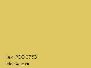 Hex #ddc763 Color is a light yellow color and the nearest color is Tacha #d6c562. Hex code #ddc763 and RGB value is rgb(221,199,99). In RGB color space, this color is composed of 87% red, 78% green, 39% blue, In CMYK color space, this color is composed of 0% cyan, 10% magenta, 55% yellow , 13% black , In HSL color space, this color has a hue angle of 49° , 64% saturation and 63% lightness.