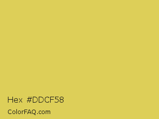 Hex #ddcf58 Color is a light yellow color and the nearest color is Confetti #e9d75a. Hex code #ddcf58 and RGB value is rgb(221,207,88). In RGB color space, this color is composed of 87% red, 81% green, 35% blue, In CMYK color space, this color is composed of 0% cyan, 6% magenta, 60% yellow , 13% black , In HSL color space, this color has a hue angle of 54° , 66% saturation and 61% lightness.