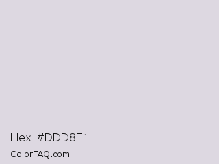 Hex #ddd8e1 Color is a very light purple color and the nearest color is Gainsboro #dcdcdc. Hex code #ddd8e1 and RGB value is rgb(221,216,225). In RGB color space, this color is composed of 87% red, 85% green, 88% blue, In CMYK color space, this color is composed of 2% cyan, 4% magenta, 0% yellow , 12% black , In HSL color space, this color has a hue angle of 273° , 13% saturation and 86% lightness.